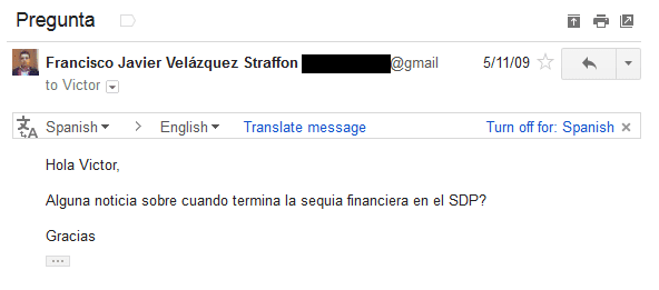 | 11 de mayo de 2009 Vuelve a preguntar cuándo habrá dinero. |